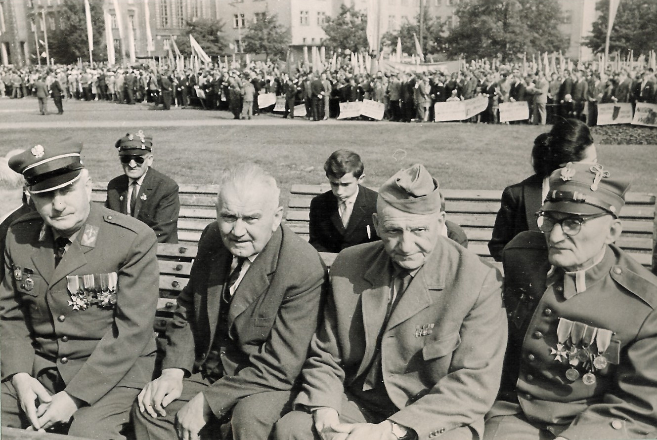 Andrzej Małach (pierwszy z lewej) podczas odsłonięcia pomnika Powstańców Wielkopolskich w Poznaniu