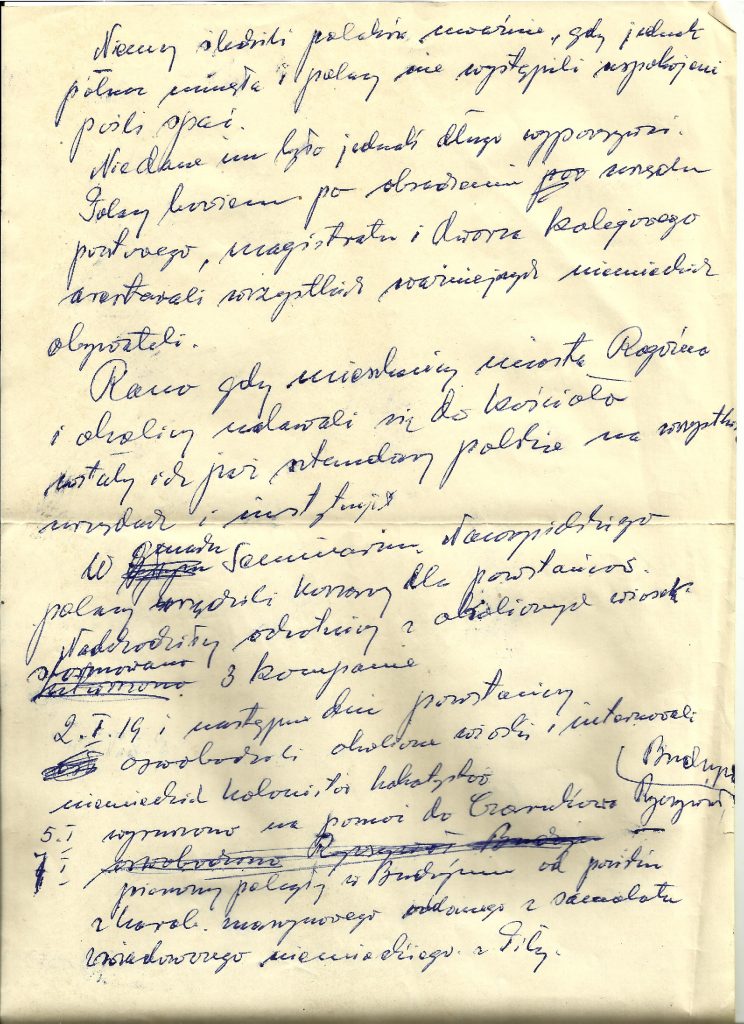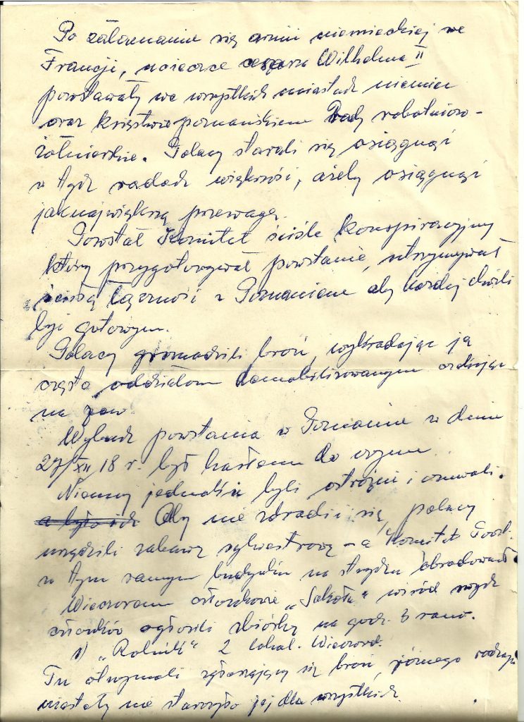 Fragment z odręcznych zapisków Andrzeja Małach dokumentujących przebieg Powstania Wielkopolskiego